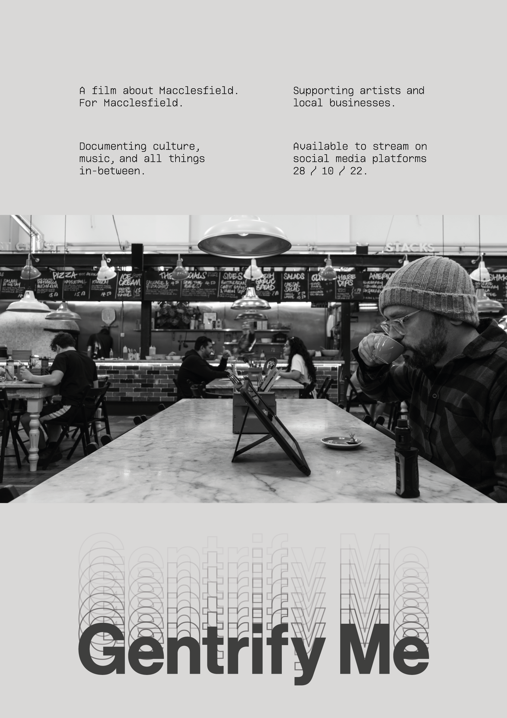 I like to support the community of Macclesfield in my own way, in my own style. In terms of graphic communication, everything is quite minimal. I tend to concentrate on colour and bold, visual statements.
